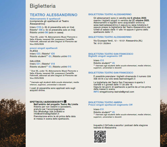 Per le informazioni su biglietti, formule di abbonamento e modalità di vendita clicca qui.