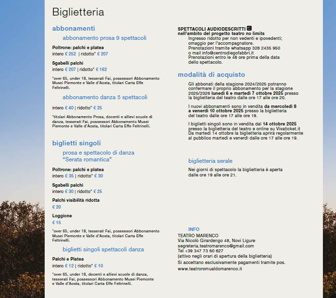 Per indicazioni su biglietti e formule di abbonamento, clicca qui.