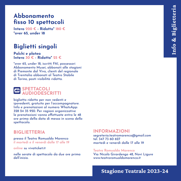 Per indicazioni su biglietti e formule di abbonamento, clicca qui.