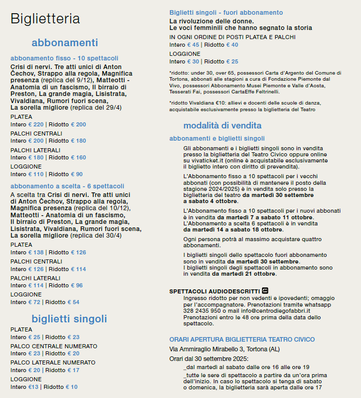 Per le informazioni sulle formule di abbonamento, i prezzi e le modalità di acquisto clicca qui